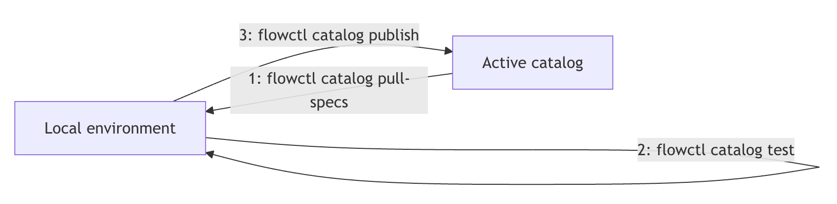 - Pulling specs: If someone on your team created a flow in the UI and you want to get the YAML spec files, use flowctl catalog pull-specs. You can pull by name or prefix. For instance, flowctl catalog pull-specs --prefix acmeCo/sales/ would fetch all the Flow spec files for everything under that prefix, writing them to your local direction. Then, you can edit them locally.