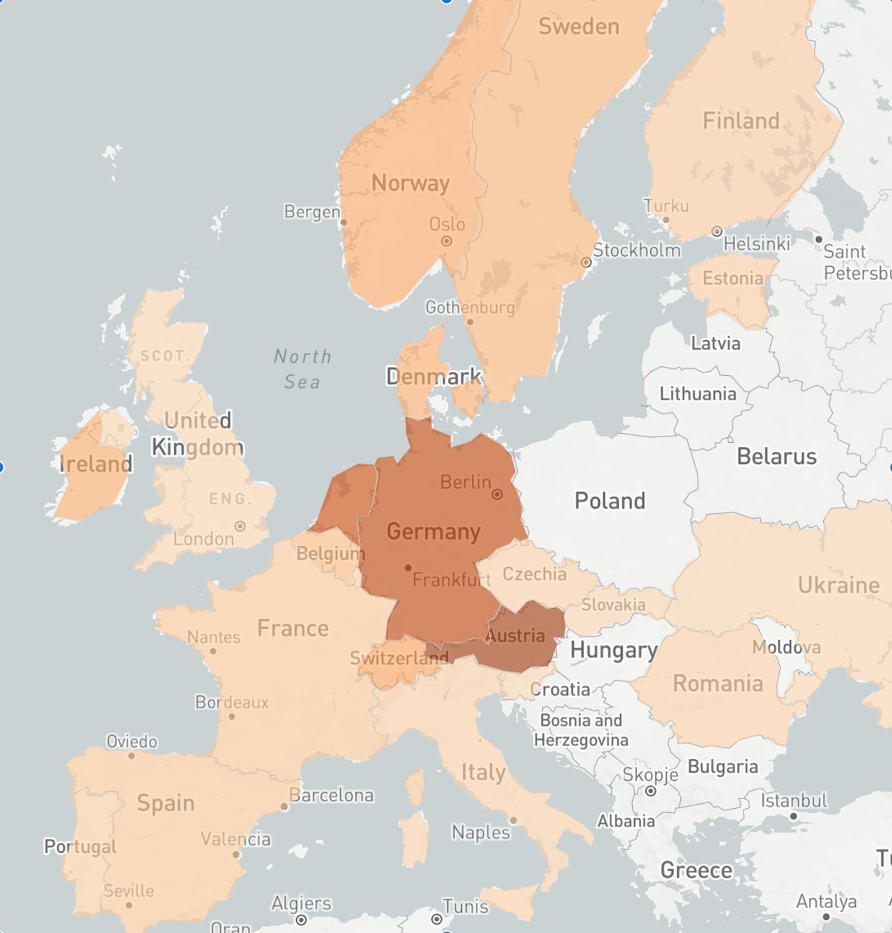 top_countries = df.sum().sort_values(ascending=False).head(50)This creates a series that holds the top 50 mentioned countries, which should be enough for our final visualization! I won't post how the results look to avoid spoilers.